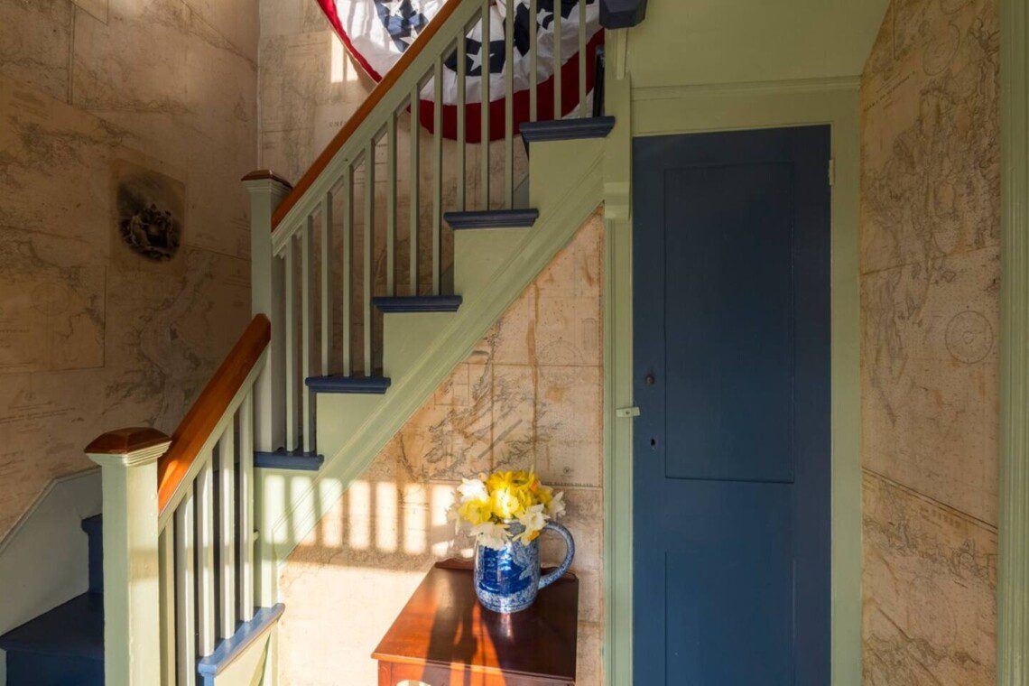 The front stairwell leading up to the Sabino and the Emma C. Berry Guest Rooms is narrow and typical of an antique colonial home of this period (think of the people that have climbed those stairs!)