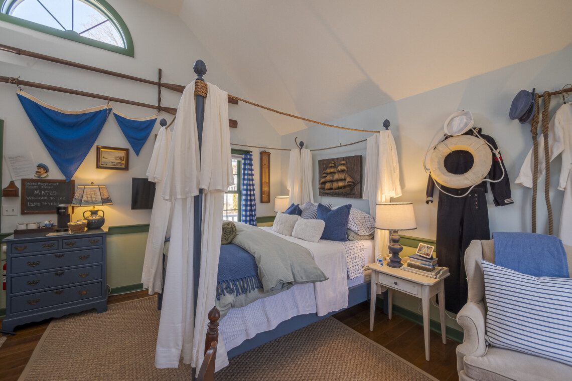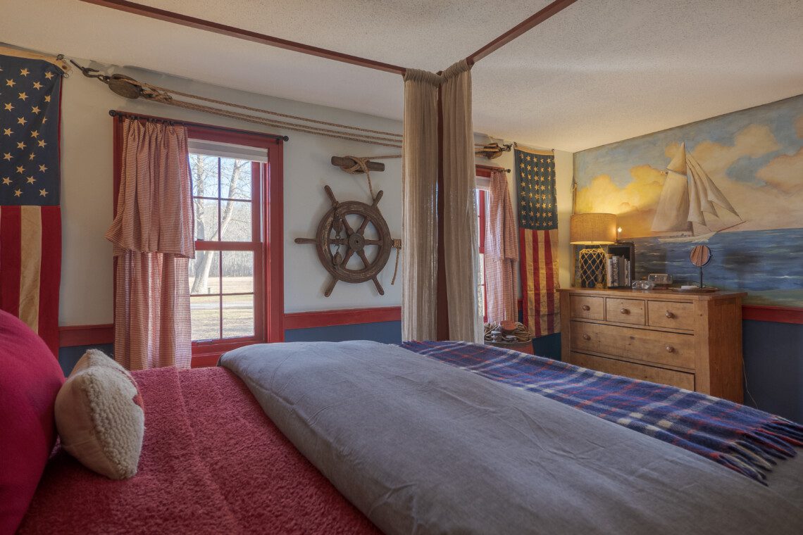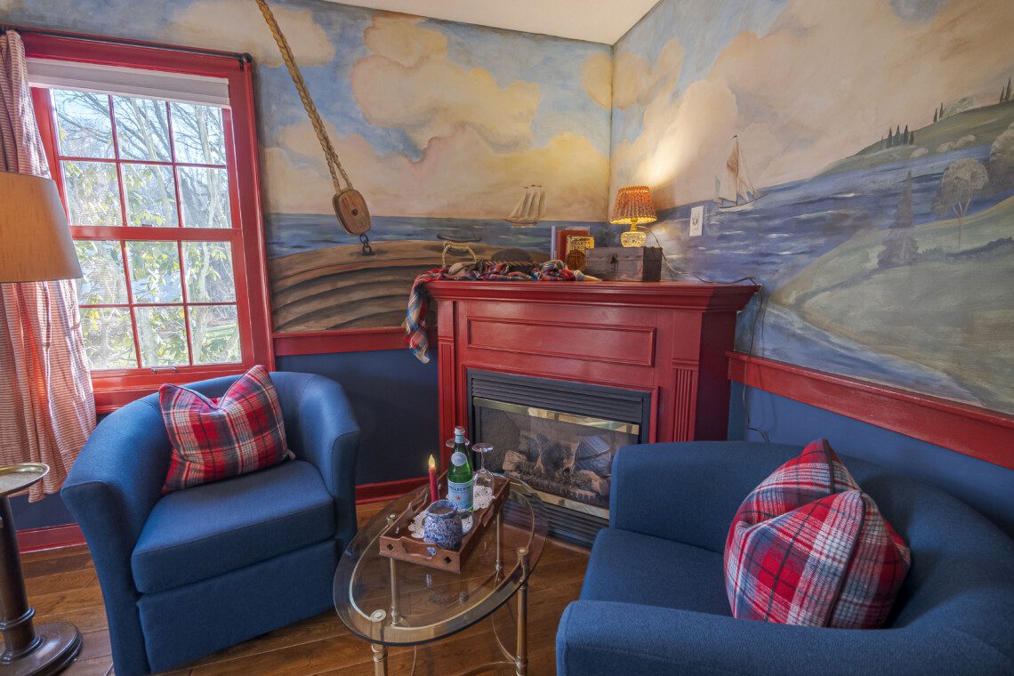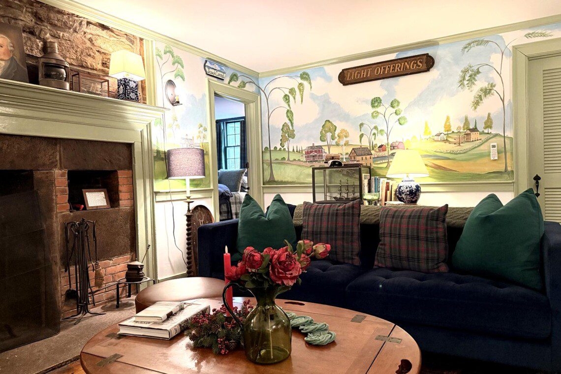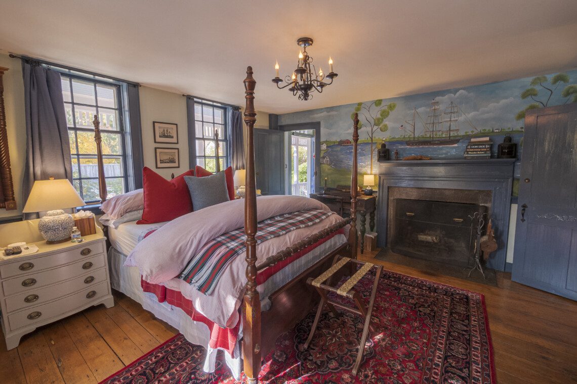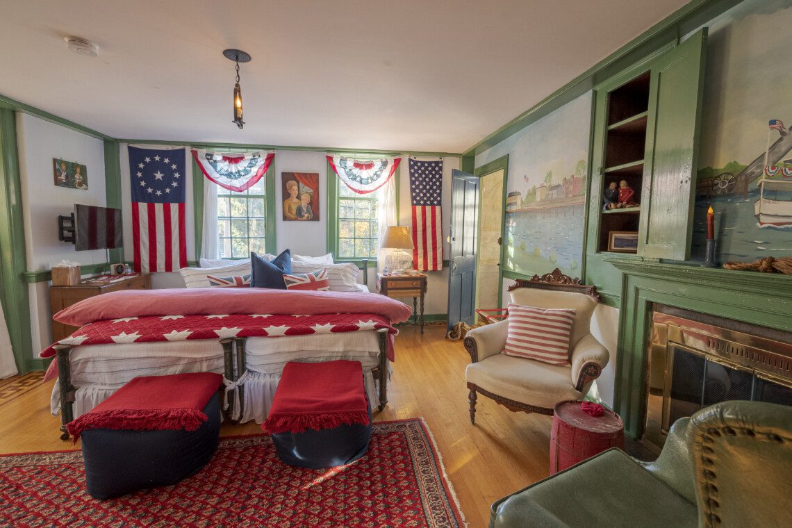 This is a two-building Old Mystic estate where maritime history meets modern comfort. Expect antiques, nautical touches, whimsical murals by local artist Susan Leach, and plenty of room to gather and privacy to relax.