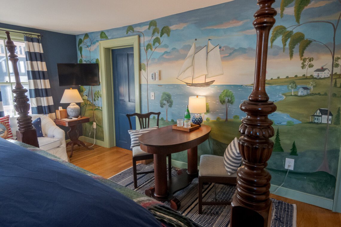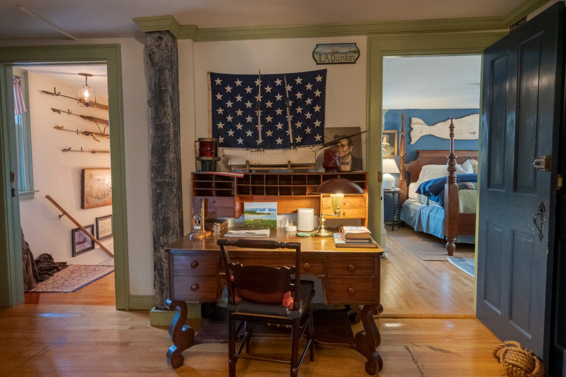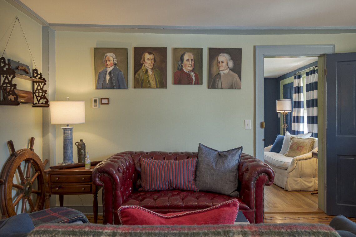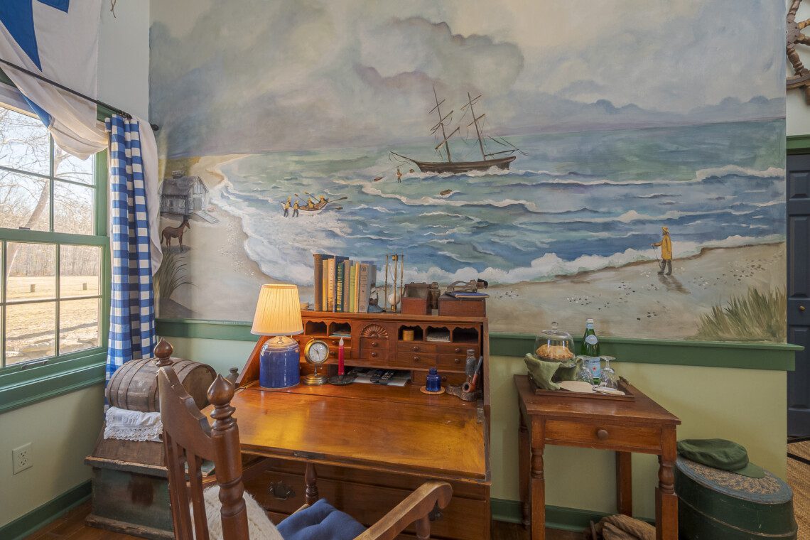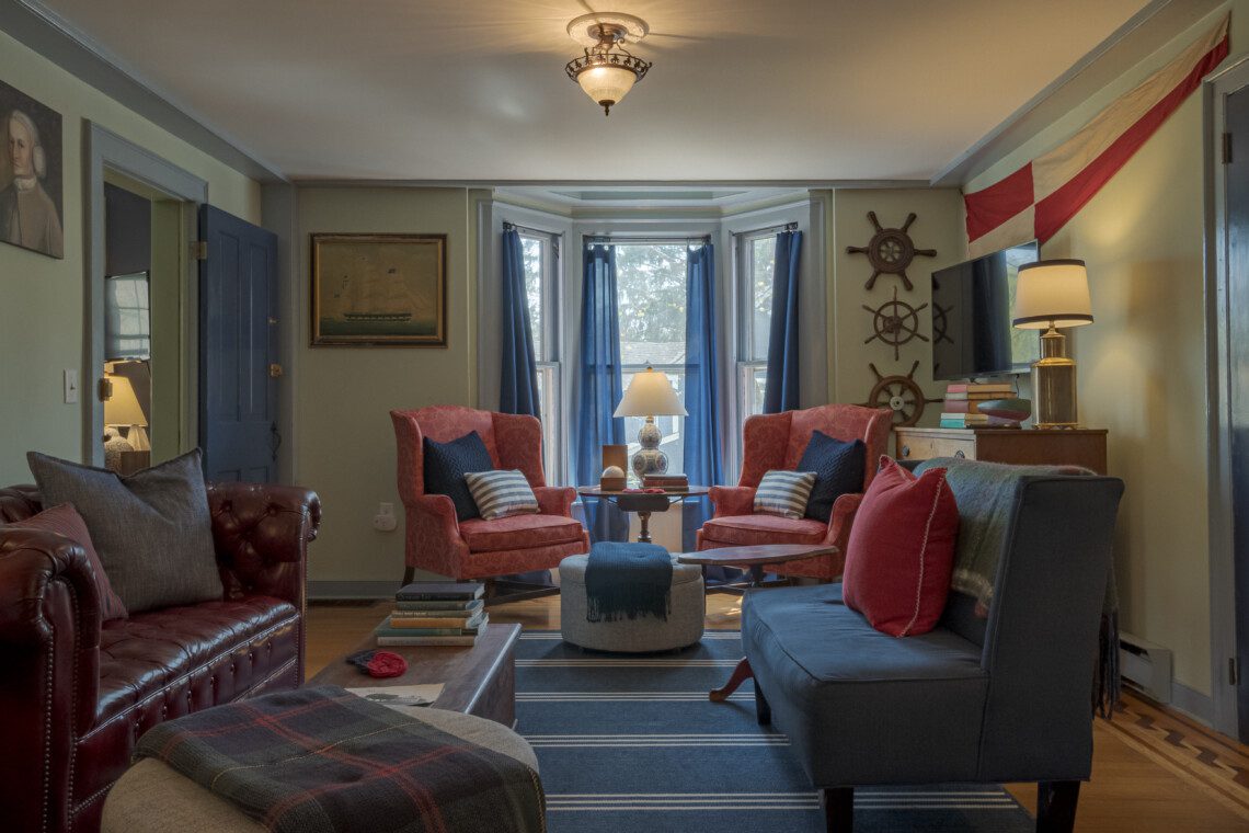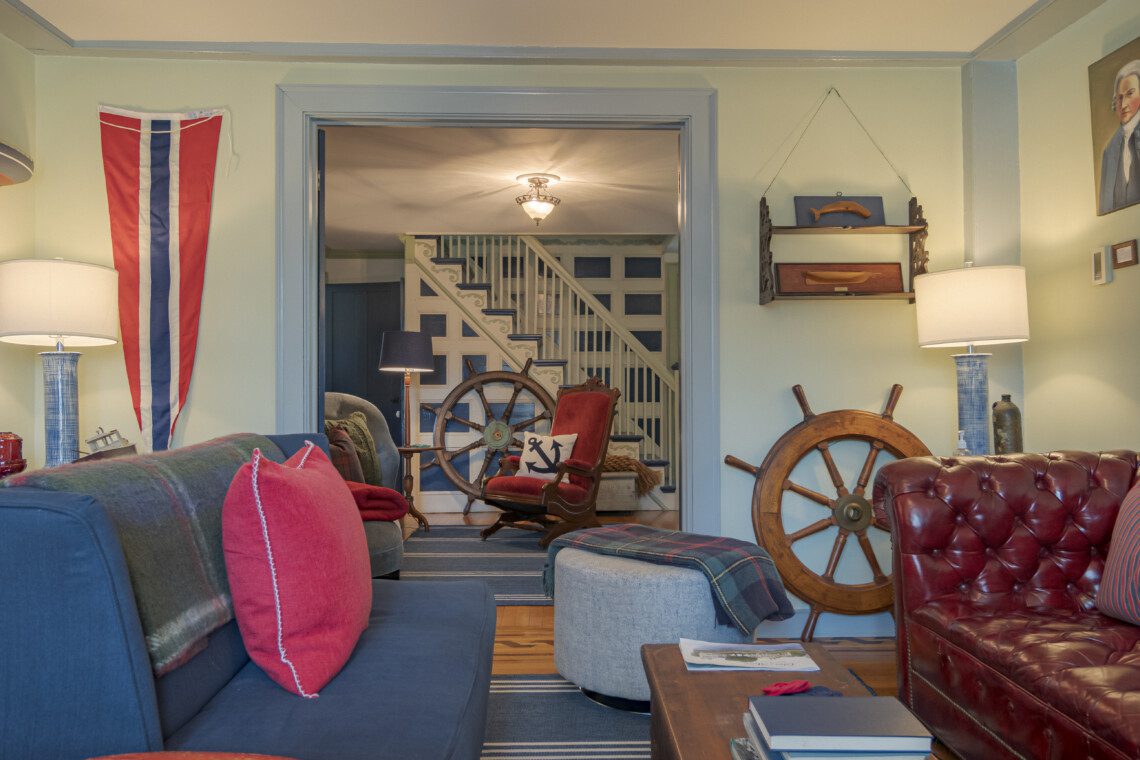 This is a two-building Old Mystic estate where maritime history meets modern comfort. Expect antiques, nautical touches, whimsical murals by local artist Susan Leach, and plenty of room to gather and privacy to relax.