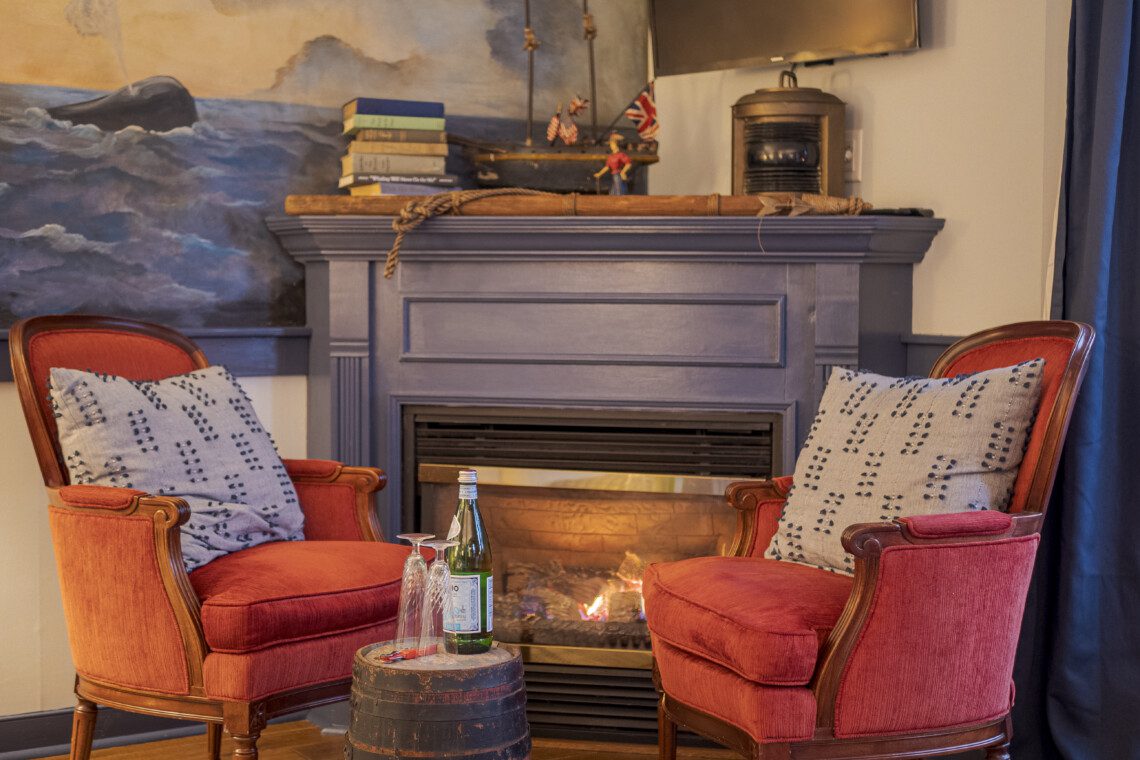 — Whaler Room (1st floor) | Queen + Full | sleeps 2 to 4 | seasonal gas fireplace | single whirlpool tub
