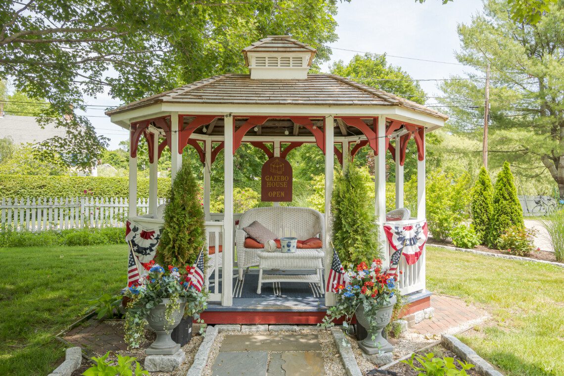 — Gazebo area and shaded seating under old maple trees