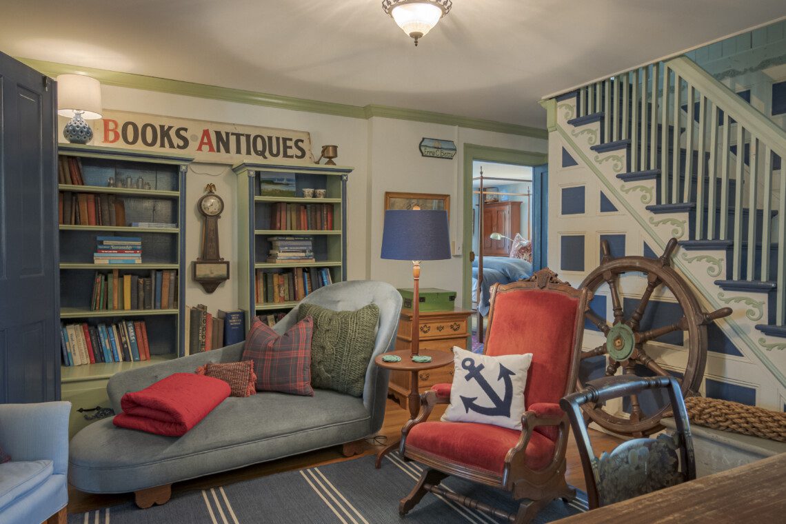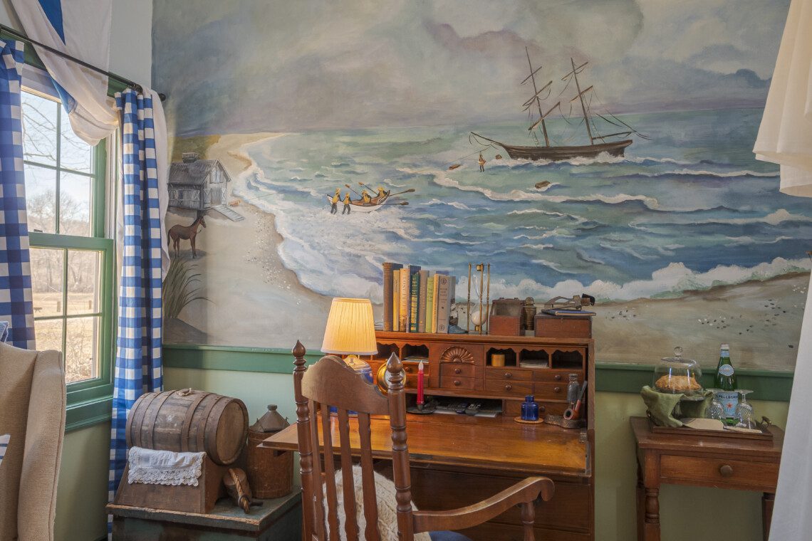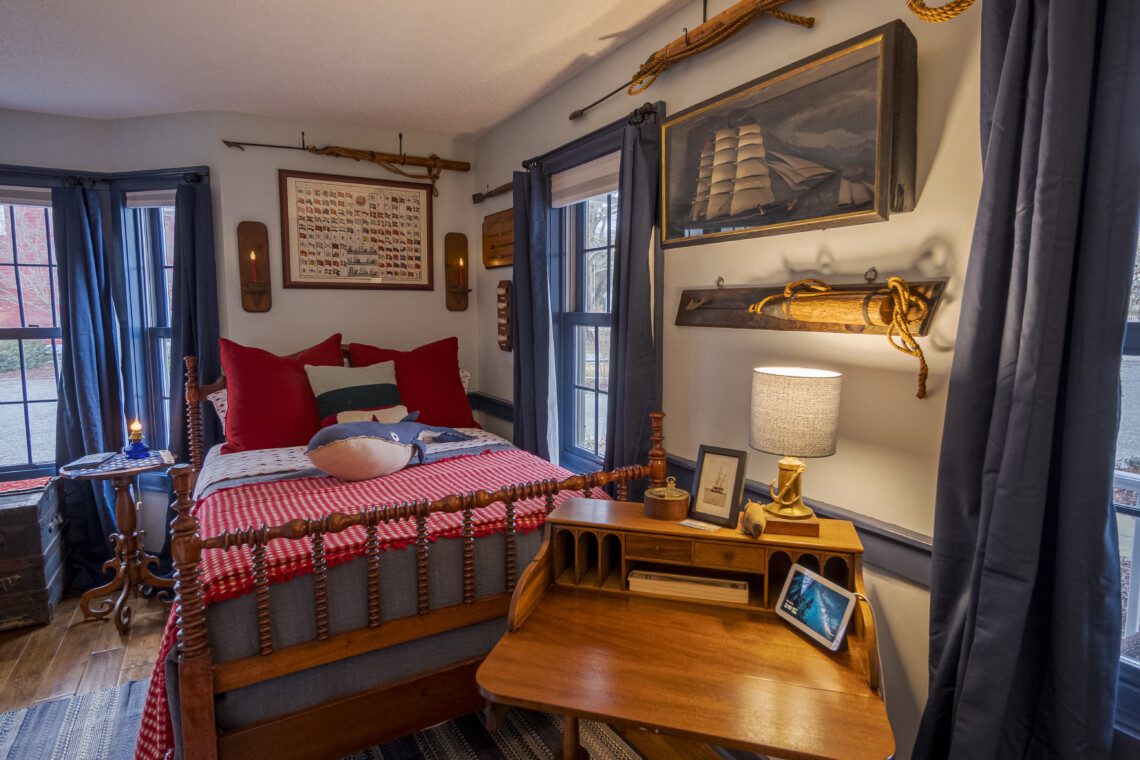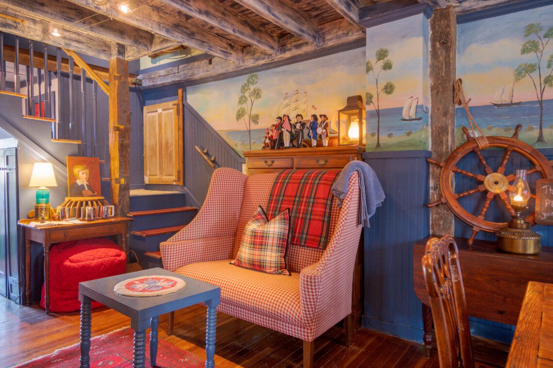 The bedrooms are themed after historic buildings at the Mystic Seaport Museum, and whimsical nautical murals by local artist Susan Leach add even more charm.