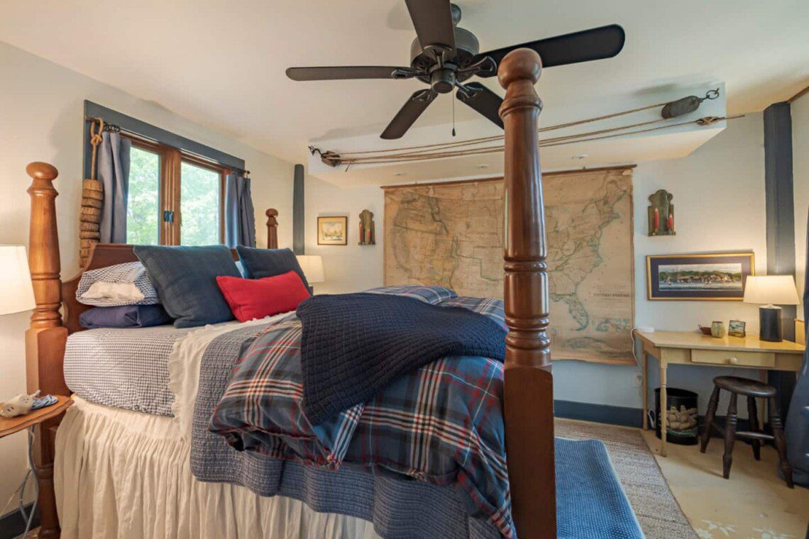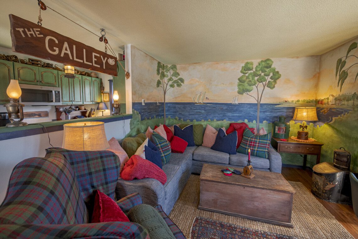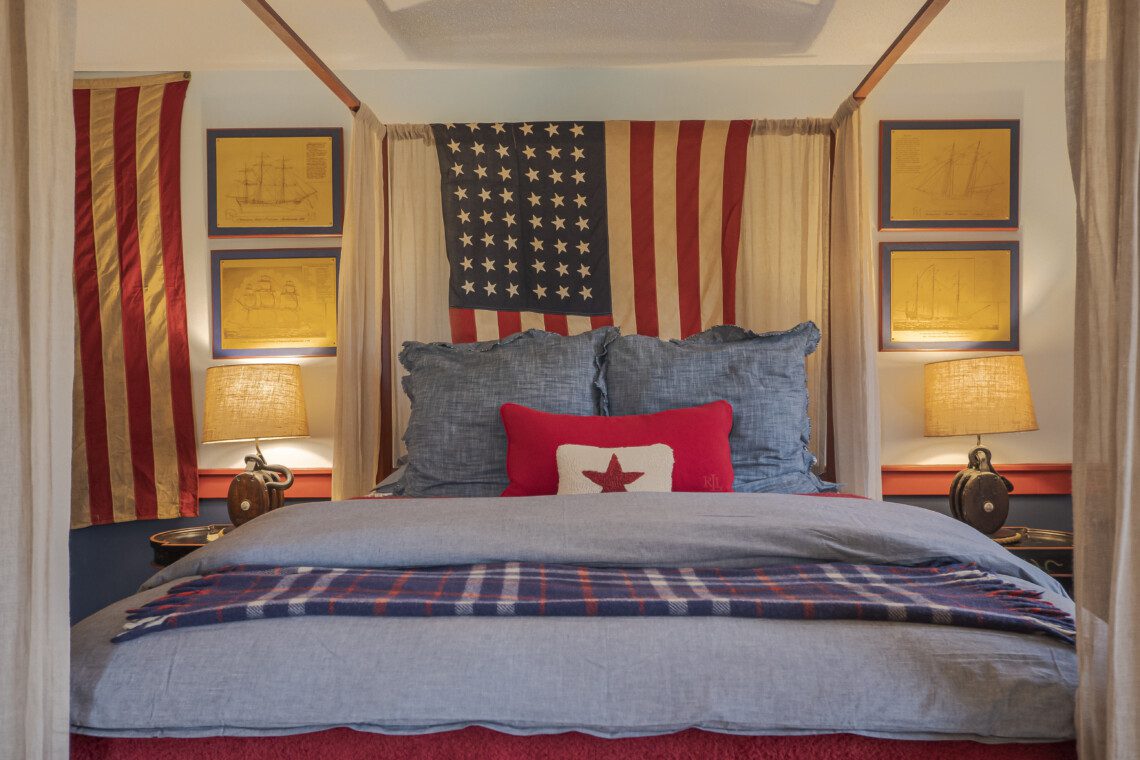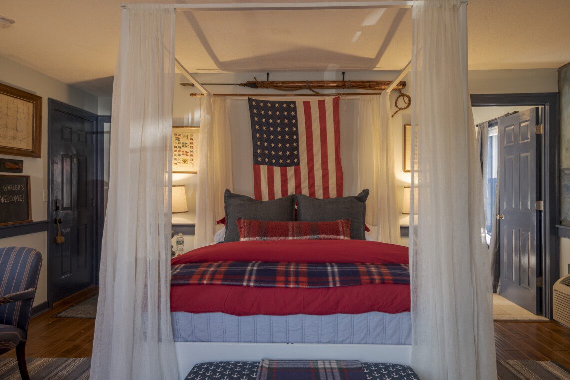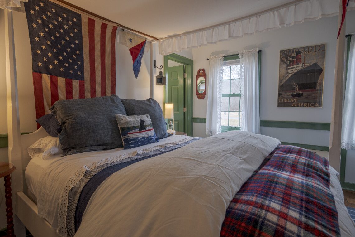 The bedrooms are themed after historic buildings at the Mystic Seaport Museum, and whimsical nautical murals by local artist Susan Leach add even more charm.